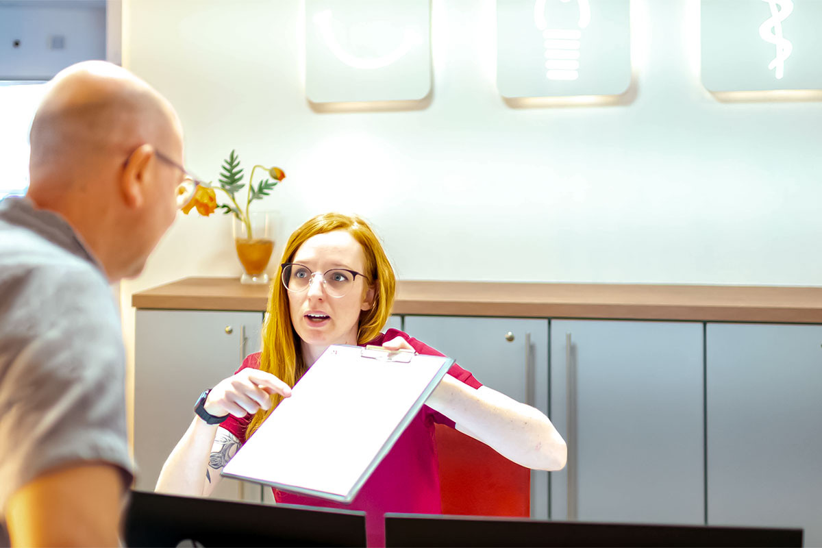 Unsere Praxis gewährleistet, dass alle operierten Patienten nach einem Eingriff nicht nur mündlich über Verhaltensrichtlinien und potenzielle Probleme informiert werden, sondern zusätzlich schriftliche Unterlagen mit diesen Informationen erhalten. Darüber hinaus stellen wir unseren Patienten eine Telefonnummer zur Verfügung, über die sie außerhalb der Praxiszeiten Unterstützung erhalten können.